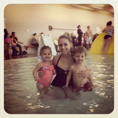 We started swim classes this week. High-larious and oh, so fun! The twins love it. They might be the happiest little swimmers in the history of forever. No kidding. They squeal, laugh, smile and wiggle with excitement. They do all the tasks the teacher asks and just want to stay in the water all night. Poor little Lincoln begrudgingly has to be done when his lips go from freezing cold purple to ice-cold blue. What a turd!